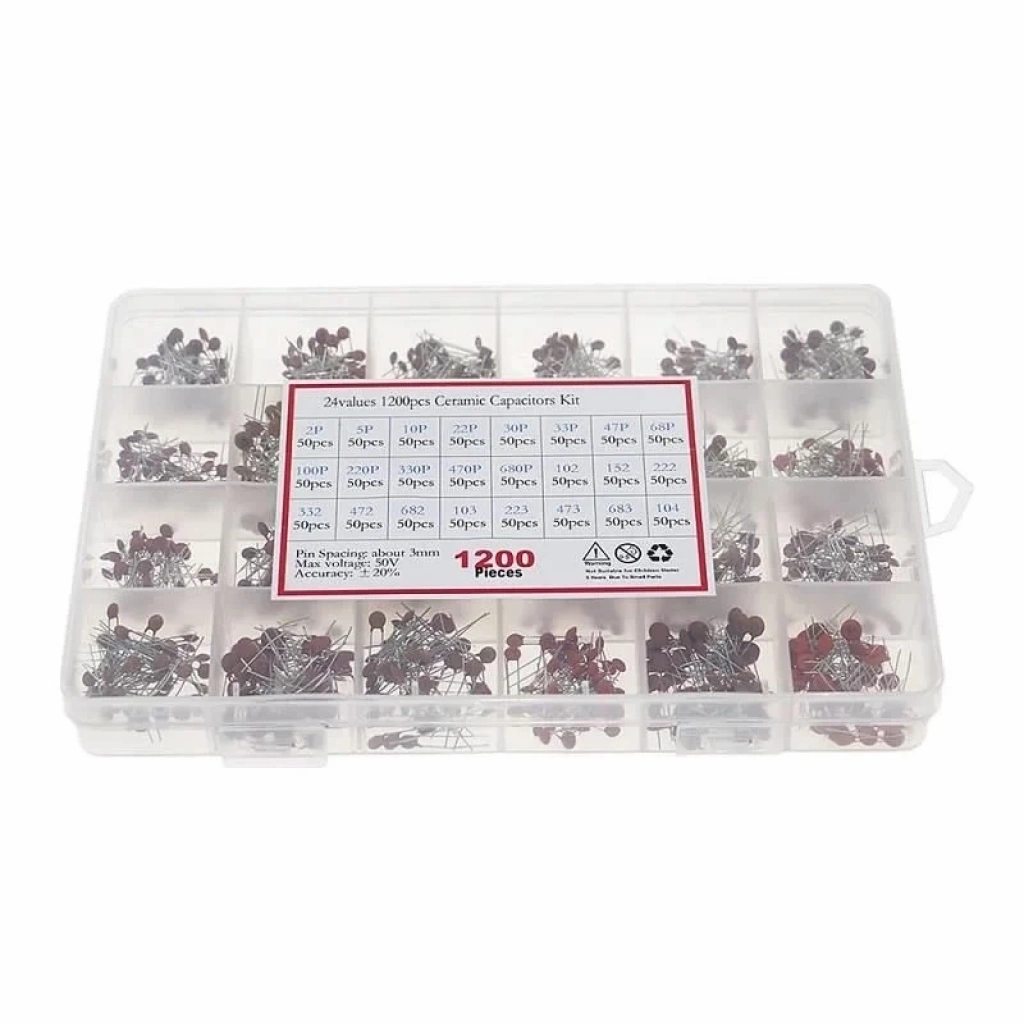 24 Farklı Değerde 2 pF ( Pikofarad ) ile 100 nF ( Nanofarad ) Arasında Değişen 1200 adet Seramik Mercimek Kondansatör