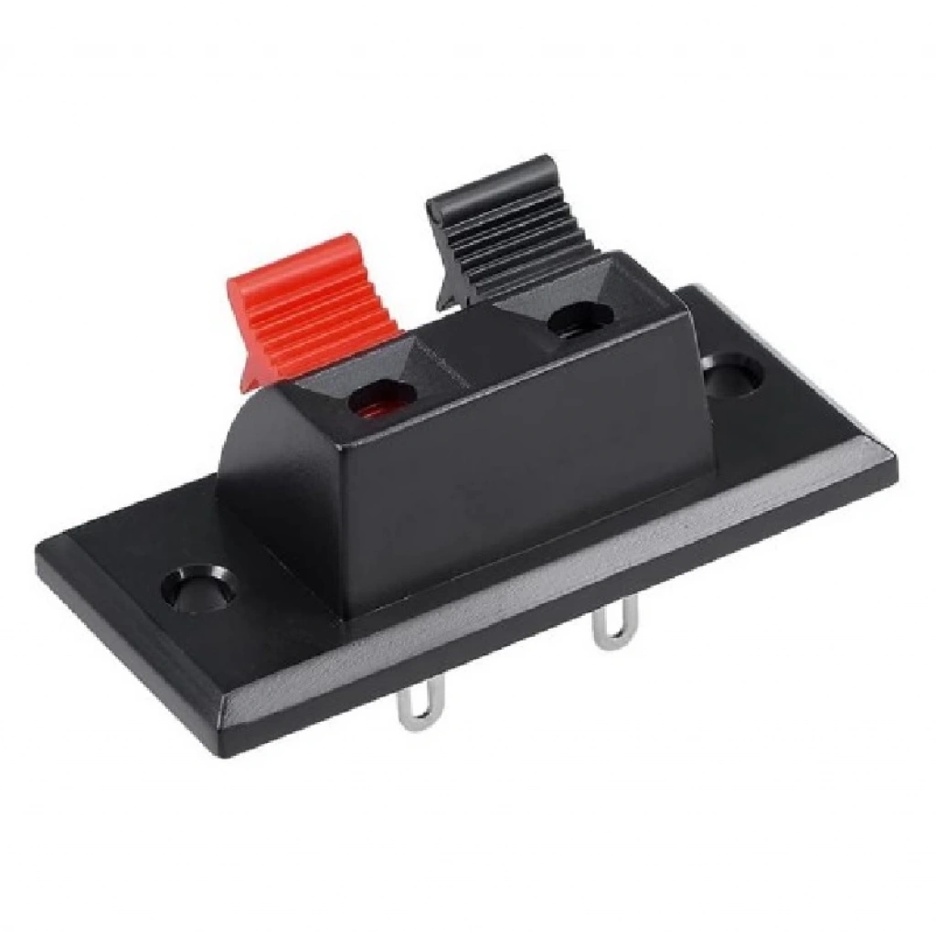 Panel Montaj Tip Yaylı Speaker Ses Kablo Bağlantı Birleştirme Konnektörü AC 50V 3A 24-16 AWG Hoparlör bağlantı soketidir. Maksimum AC 50V 3A taşıma kapasitesi vardır. 24/16 Awg kablo bağlantı için kullanabilirsiniz. Yaylı mandal soketler ittirilerek soket deliği açılır. Kablo içerisine sokulduktan sonra mandal bırakılır. yaylı yapı kabloyu sıkıştırır. Lehim yapmadan hızlıca kabloları bağlayıp ayırabilirsiniz. Darbe sıcaklık ve nem gibi etkilere karşı koruma sağlar. Soket mandalları görsel olarak kırmızı siyah renk işaretlenmiştir.