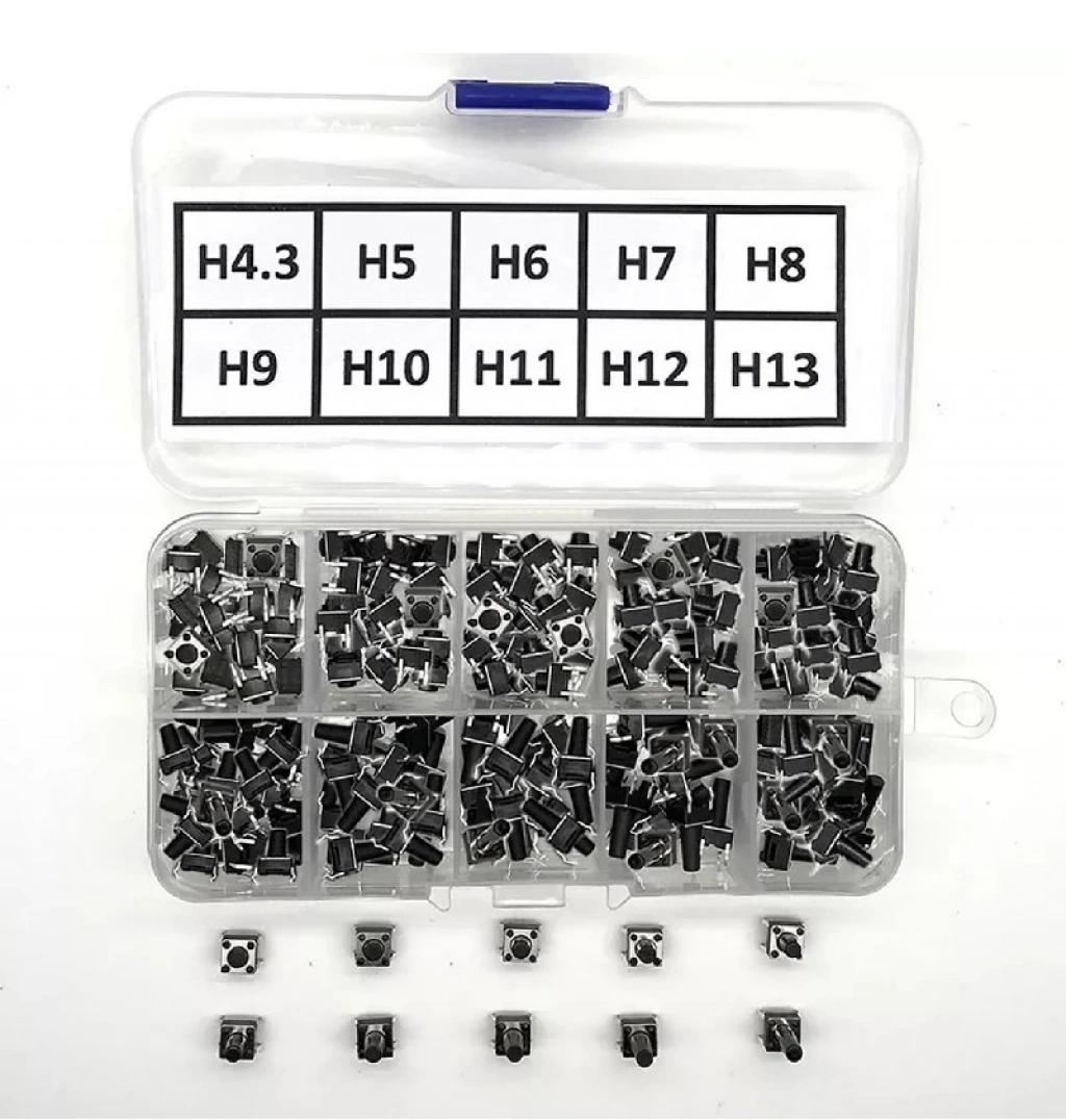 10 Farklı Yükseklikte 4 Pin Dokunmatik Anlık Basmalı Düğme Anahtar 4.3/5/6/7/8/9/10/11/12/13mm Kutulu Buton Kit