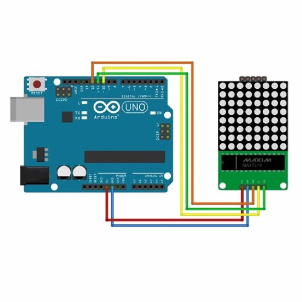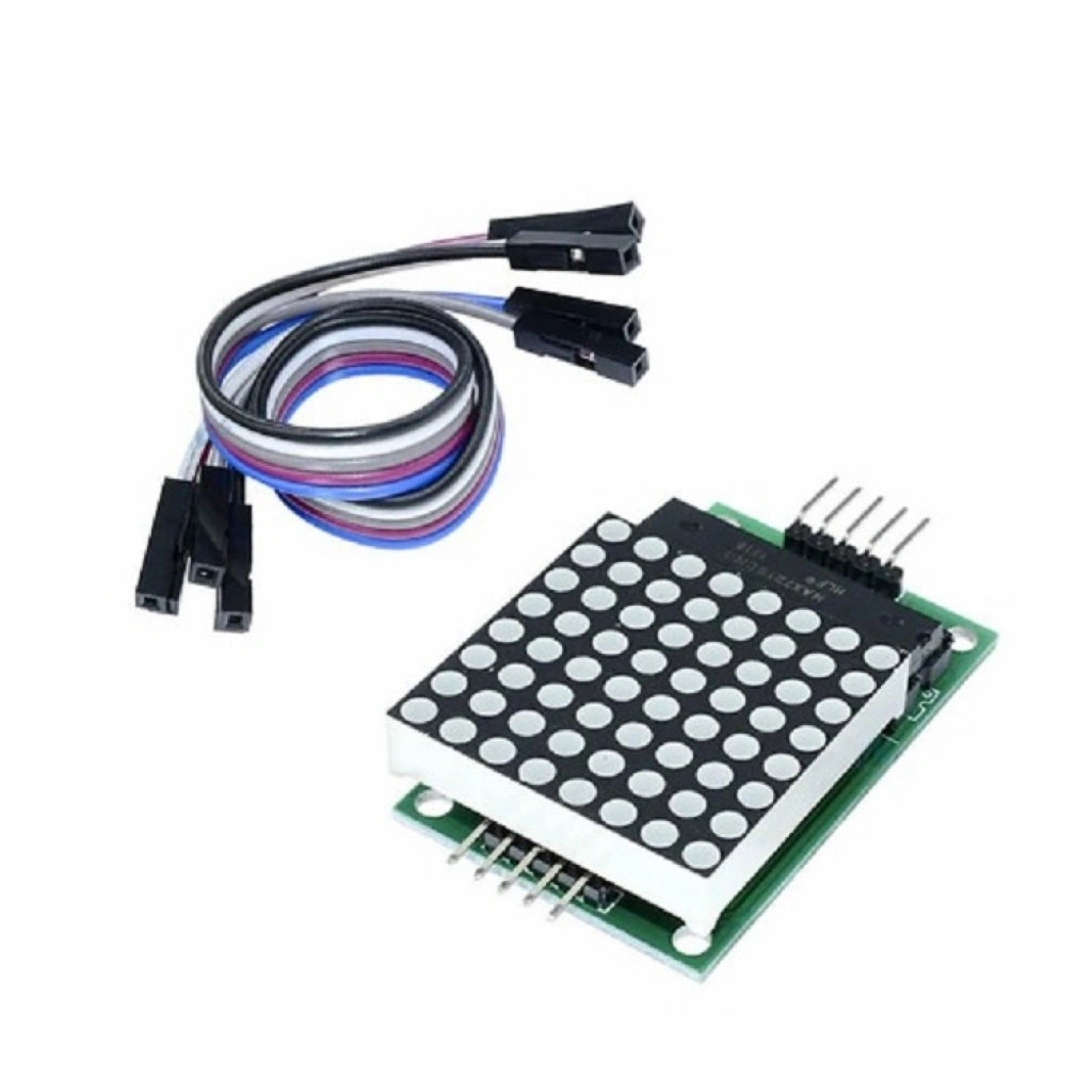 MAX7219 entegresi ile 8x8 kırmızı dot matrix ( Nokta led ) ekran modülüdür. 8x8 toplam 64 dotu kontrol ederek çeşitli gösterge ekranı olarak kullanabilirsiniz. Harf rakam yada şekiller oluşturabilirsiniz. Bir mcu ile max7219 sürülür. Max7219 da ekrana ilgili datayı aktarır.
