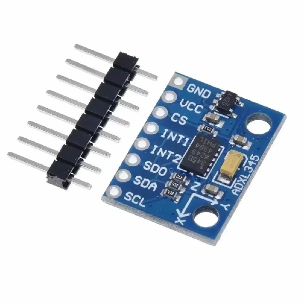 ADXL345, küçük, düşük güç tüketimine sahip 3 eksende çıkış verebilen bir açısal ivme ölçer sensörüdür. ±16g'lik bir algılama alanına sahip olup, I²C hattı üzerinden ve SPI hattı üzerinden çıkış alınabilir.