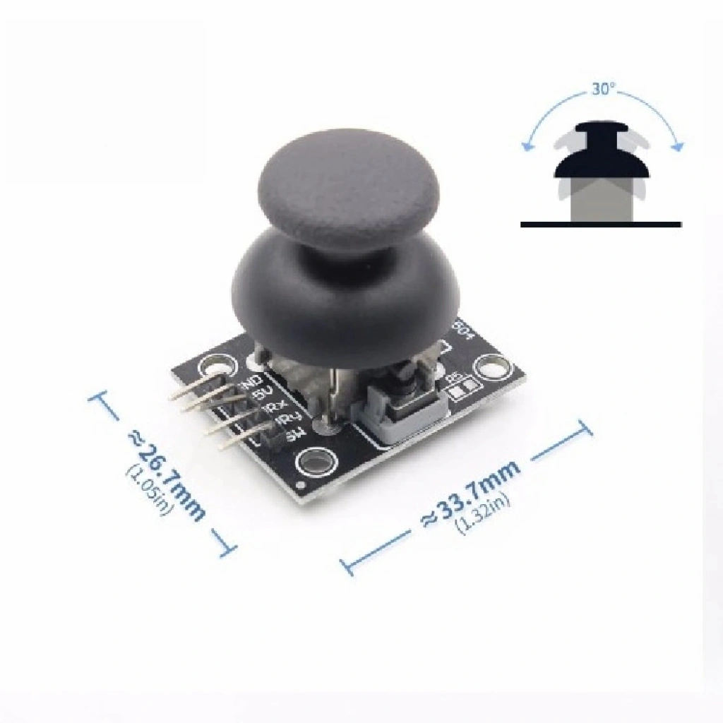 İki eksenli bu joystick kartı çeşitli robotik projelerde, kumandalarda ve kontrol sistemlerinde kullanabileceğiniz bir karttır. X ve Y ekseni olmak üzere iki eksende analog çıkış verir. Bununla birlikte joystick'in ortasında bir adet de buton bulunmaktadır. Kart üzerinde güç ledi bulunmaktadır.