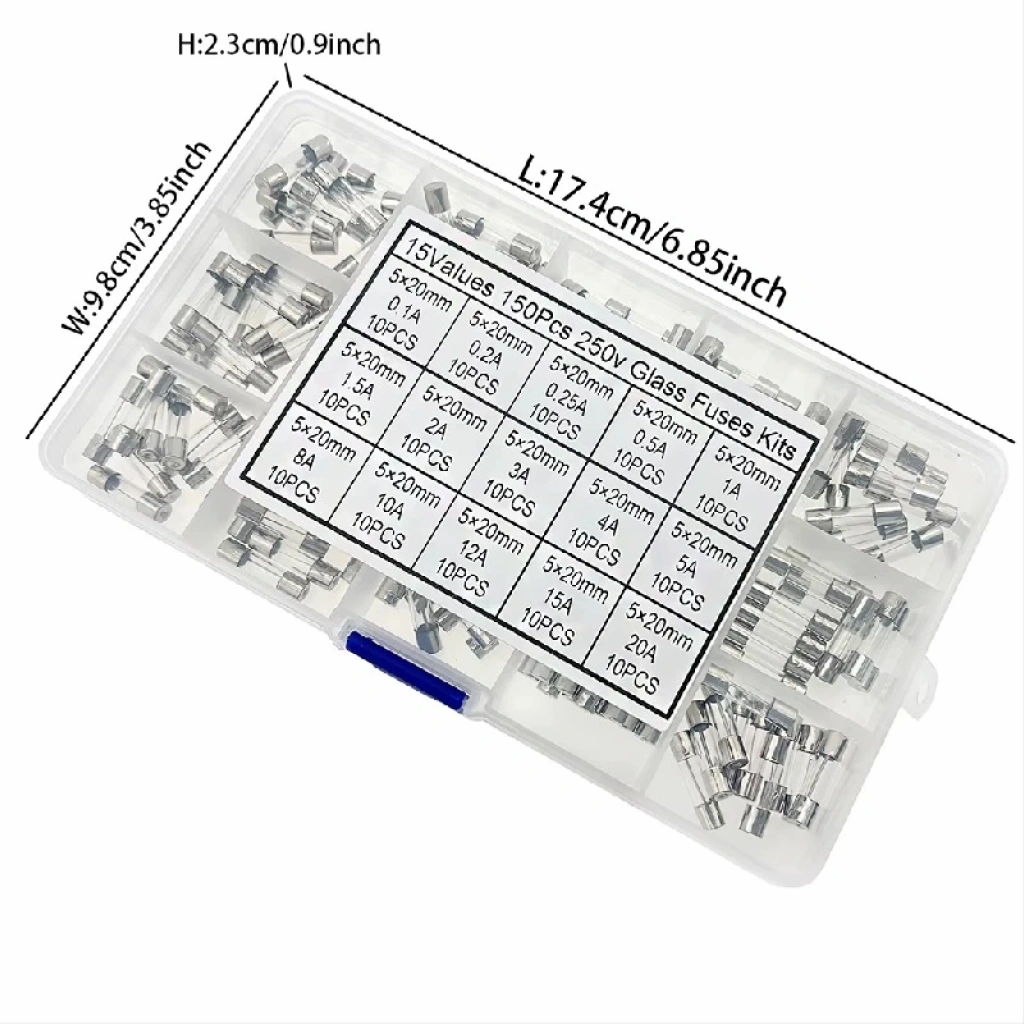 Cam Sigorta Seti 5x20 mm 150 Adet 15 Çeşit 250V - Kutulu