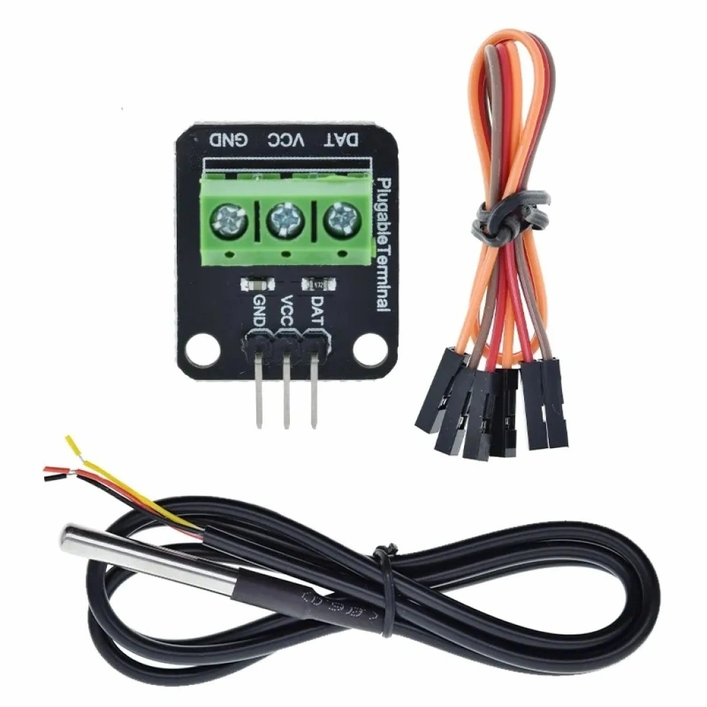 Kit, su geçirmez bir dijital sıcaklık sensörü DS18B20 ve bir DS18B20 adaptör modülü içerir ve sıcaklığı doğrudan su içinde ölçebilir. Kart üzerindeki pull-up direnci ile adaptör modülü çoğu mikrodenetleyiciye doğrudan bağlanabilir ve balık tankları, ekipman, makine, seralar için sıcaklık izlemede yaygın olarak kullanılır.