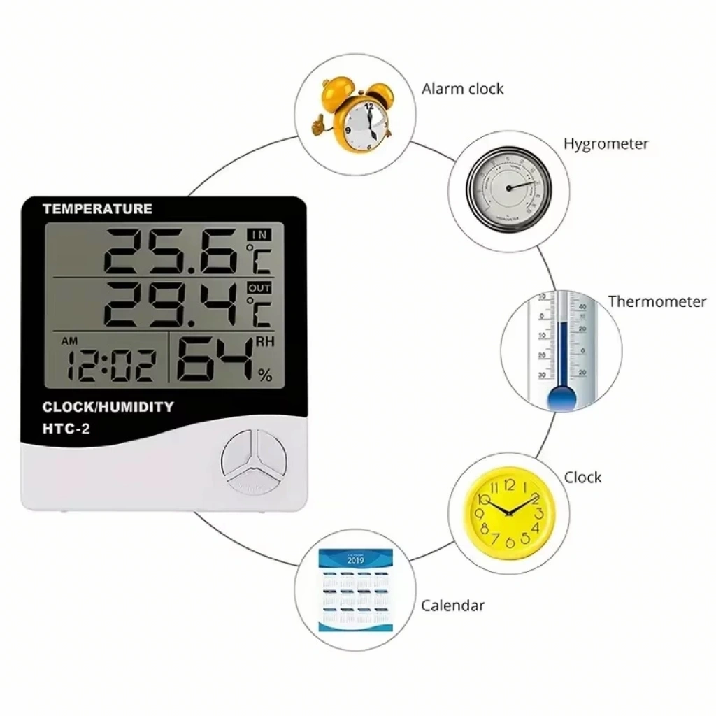 1 Adet Htc-2 Dijital Termometre Saat Nem ve Sıcaklık Ölçer