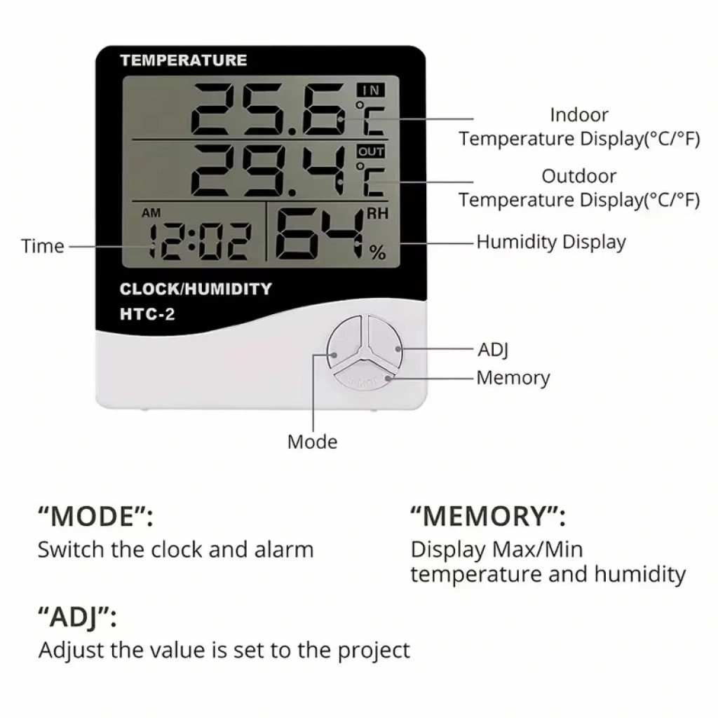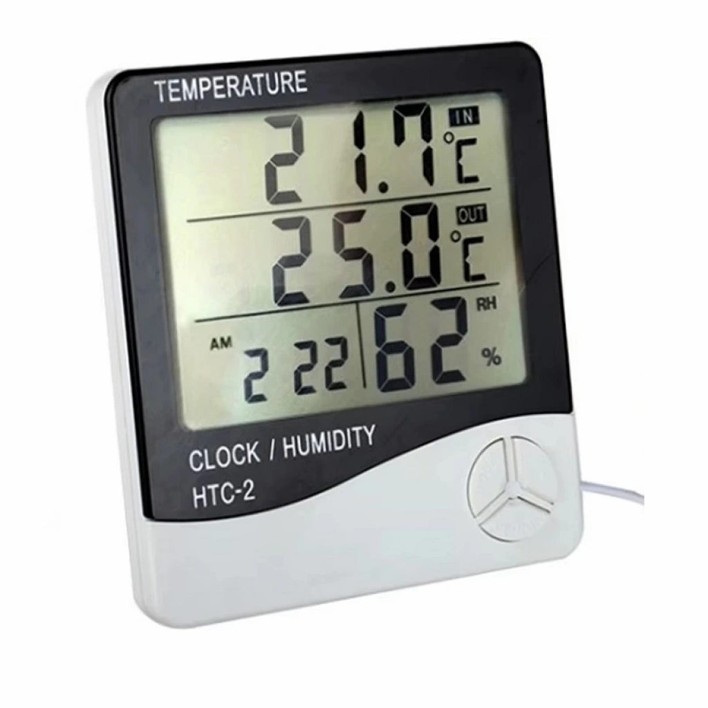HTC-2 Dijital Termometre, kullanıcı dostu özellikleri ile ön plana çıkar. İç ve dış mekan sıcaklık ölçümü yapabilme imkanı verir. Yüksek ve düşük sıcaklık hafızası bulunur. Nem ölçer ile ortamın nem durumunu gösterme desteği verir. Saat fonksiyonu ile zamanı takip edebilirsiniz.