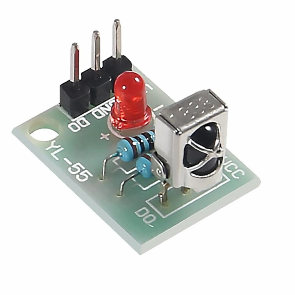 38 KHz'lik kablosuz kızılötesi kumanda ile veya çeşitli robotik ve hobi uygulamalarında kullanabileceğiniz, kolay kullanımlı olan 38 KHz'lık kızılötesi alıcı göz kartıdır. Kart üzerinde 38 KHz'lik 1838B kızılötesi alıcı göz bulunmaktadır. Alıcı 60º'lik bir görme açısına sahiptir. IR alıcı verici kumanda seti ile beraber kullanılabilmektedir. Bu sayede tek kumanda ile birden çok alıcı kontrol edilebilmektedir.