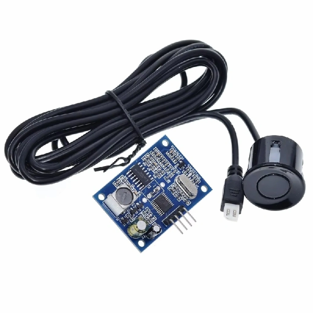 Engelden kaçan robot gibi projelerde sıklıkla kullanılan HC-SR04 ultrasonik mesafe sensörünün su geçirmez muhafazaya sahip sürümüdür. Kullanımı ve bağlantısı HC-SR04 ile tamamen aynıdır.