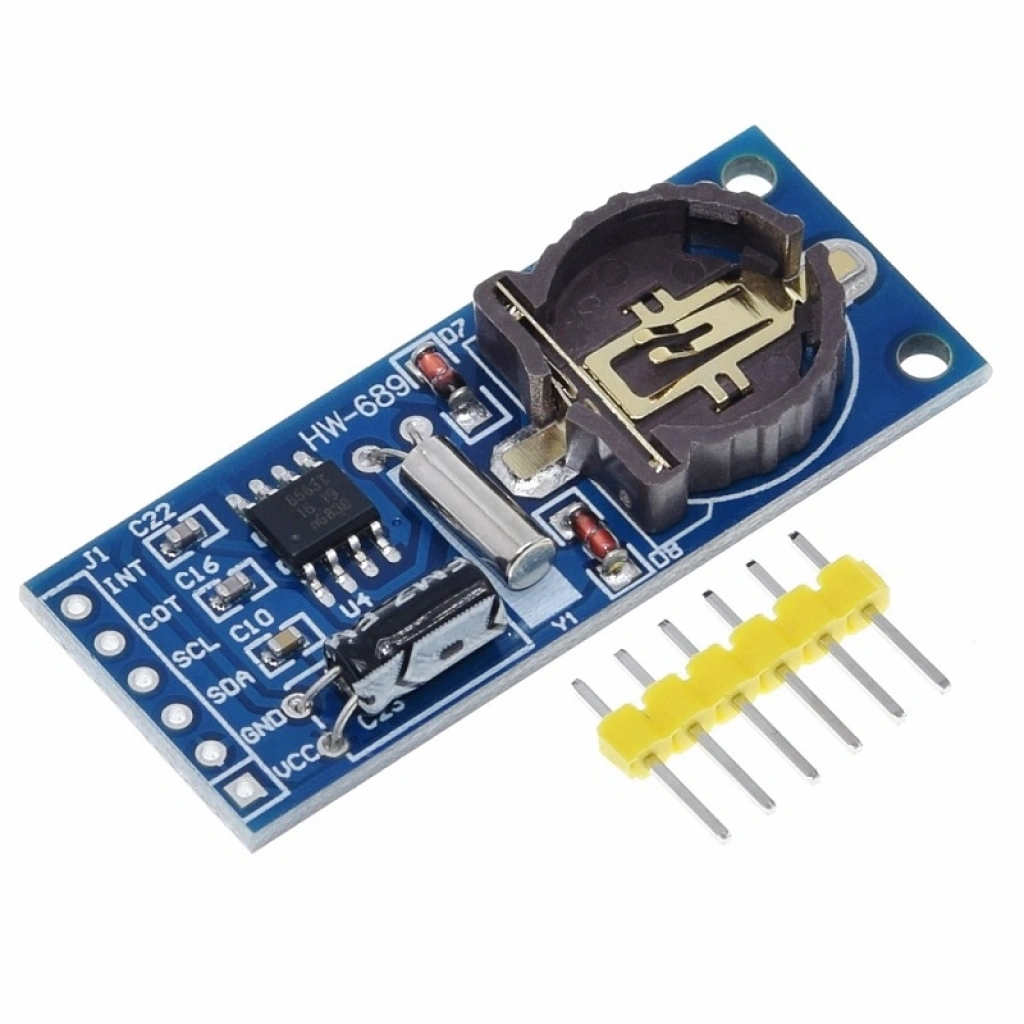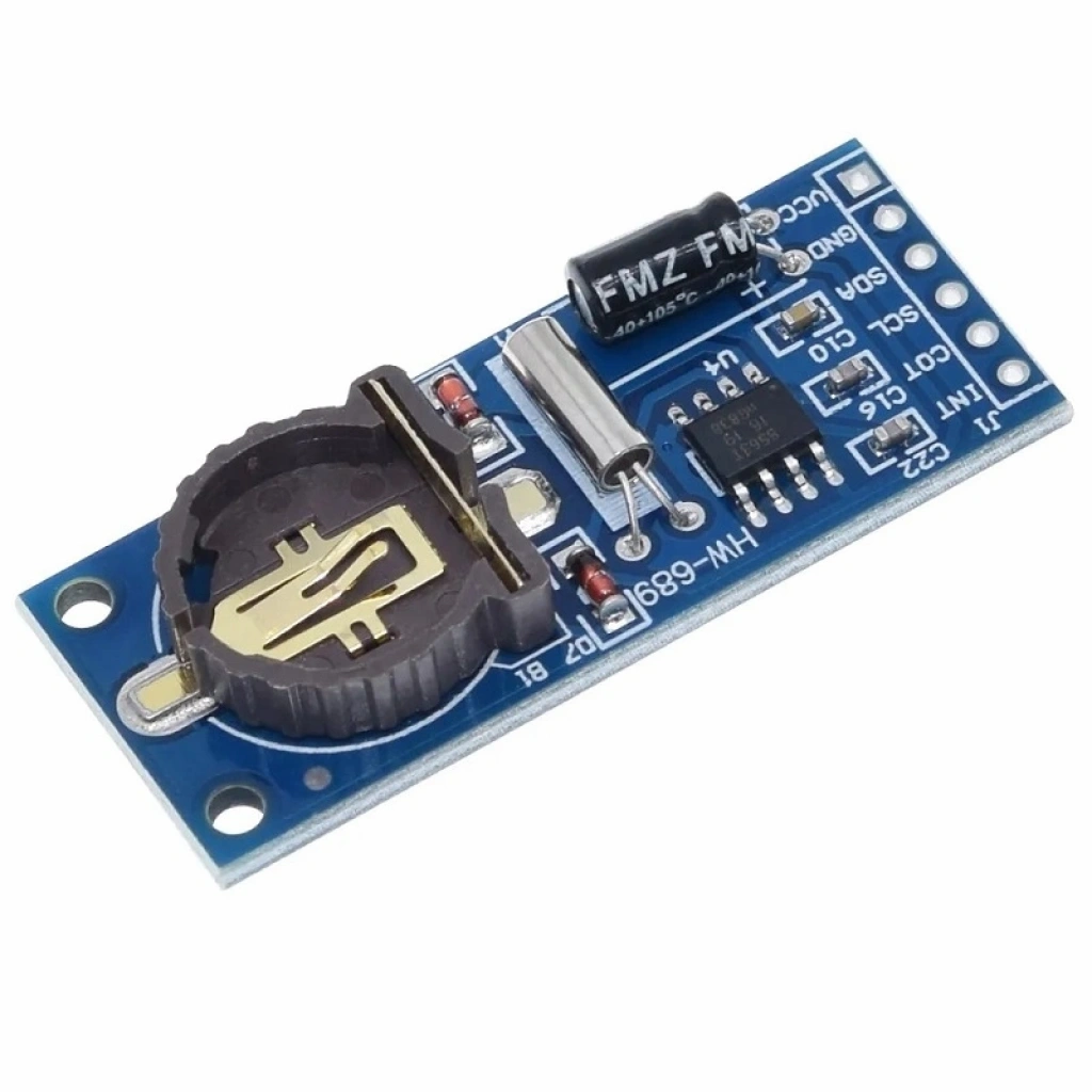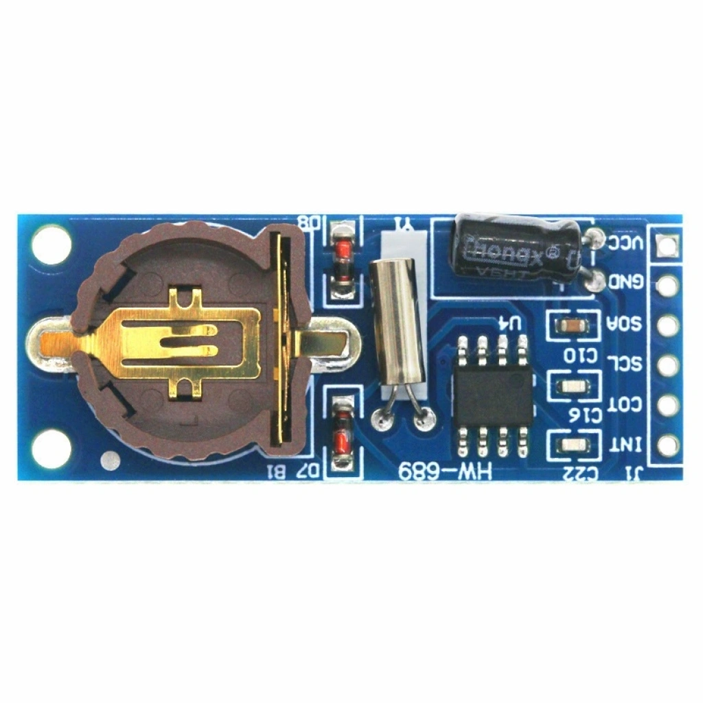 PCF8563 RTC (Real Time Clock) modülü, düşük güç tüketimi ile hassas zaman tutma işlevi sunan I2C protokolünü kullanan bir gerçek zamanlı saat modülüdür. Saat, dakika, saniye, gün, ay, yıl ve haftanın gününü takip edebilir. Pil destekli yapısıyla enerji kesintilerinde dahi zamanı korur.
