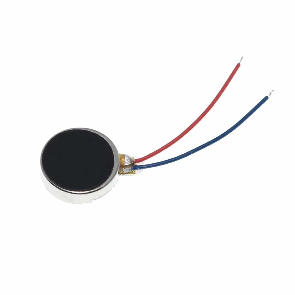 12000 Rpm DC 2V/5V Küçük Telefon Oyuncak Saat Düğme Para Tip Yuvarlak Düz Mesaj Uyarı 10mm titreşim 1200rpm dc motor. Telefon oyuncak masaj aleti diş fırçası saat vb. pek çok cihazda titreşim oluşturmak için kullanılır. Uzun ömürlüdür. Arka kısmında yapışkan bant bulunmaktadır. Etiket çıakrtılıp kullanılacak yüzeye yapıştırılabilir. Özellikler Çalışma voltajı: DC 3V ( 2V / 5V ) Çalışma akımı: 70mA Uzun ömür Yapışkan bant ile kolay montaj Çalışma sıcaklığı: -20C / 60C Renk: Siyah / Gri Boyutlar: 3mm x 10mm Kablo uzunluğu: 30mm Ağırlık: 1gr