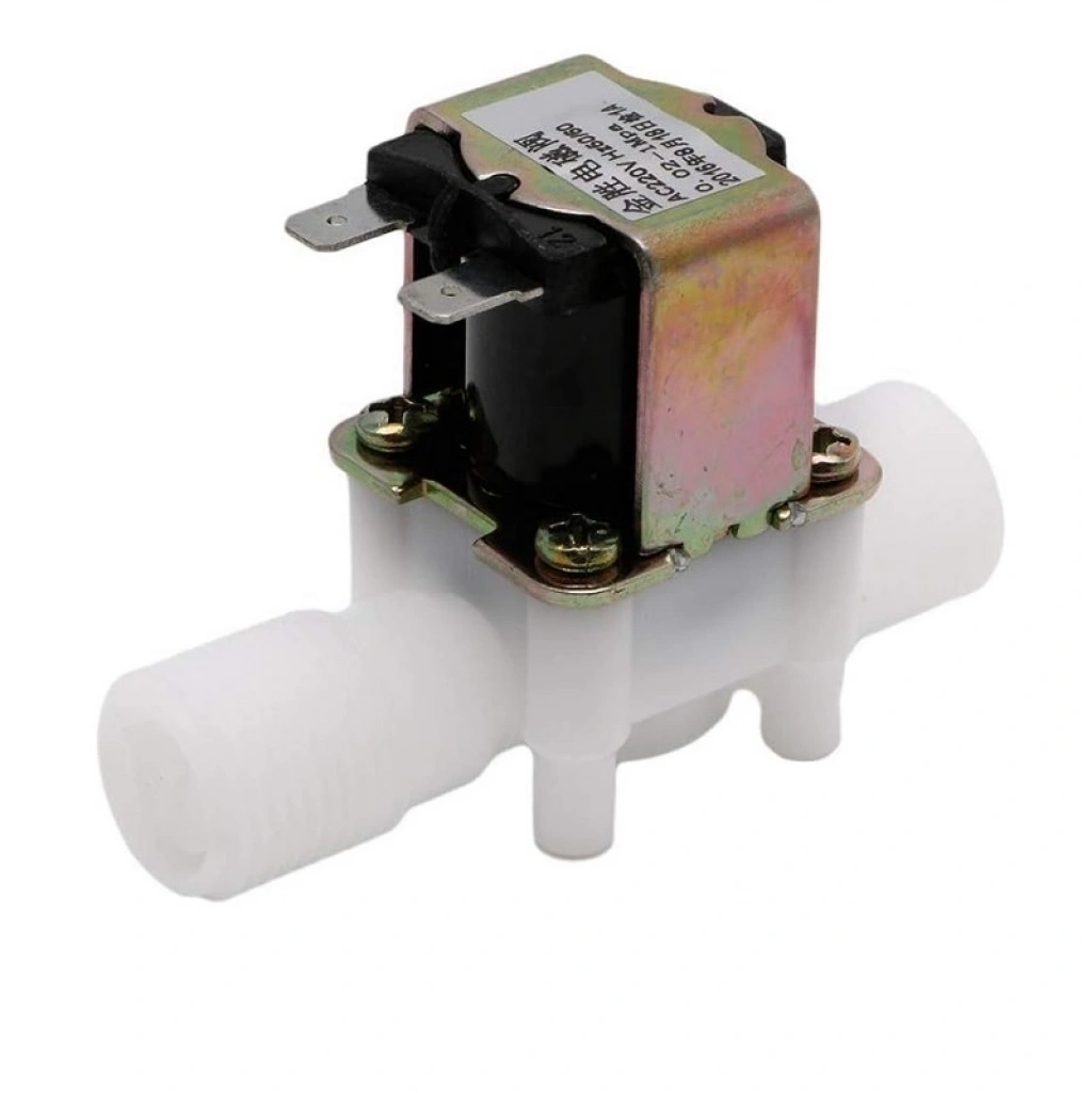 Elektronik devreler ile sıvı akışı kontrol etmenizi sağlayacak solenoid valftir. Normal durumda valf kapalı konumdadır, terminallerine 220V uygulandığında ise açılır ve sıvı geçişine olanak tanır. 1/2" genişliğinde NPT tipi boru bağlantısına sahiptir. Valf içinde contaların tam olarak açılabilmesi ve sıvının akması için minimum 0.02 Mpa (3 psi) basınca ihtiyaç vardır. Mikrokontrolcüler ile kullanacağınız zaman BDX53C veya benzeri bir N tipi transistör ve 1N4007 benzeri bir diyot ile sürücü devresi kurmanız önerilir.