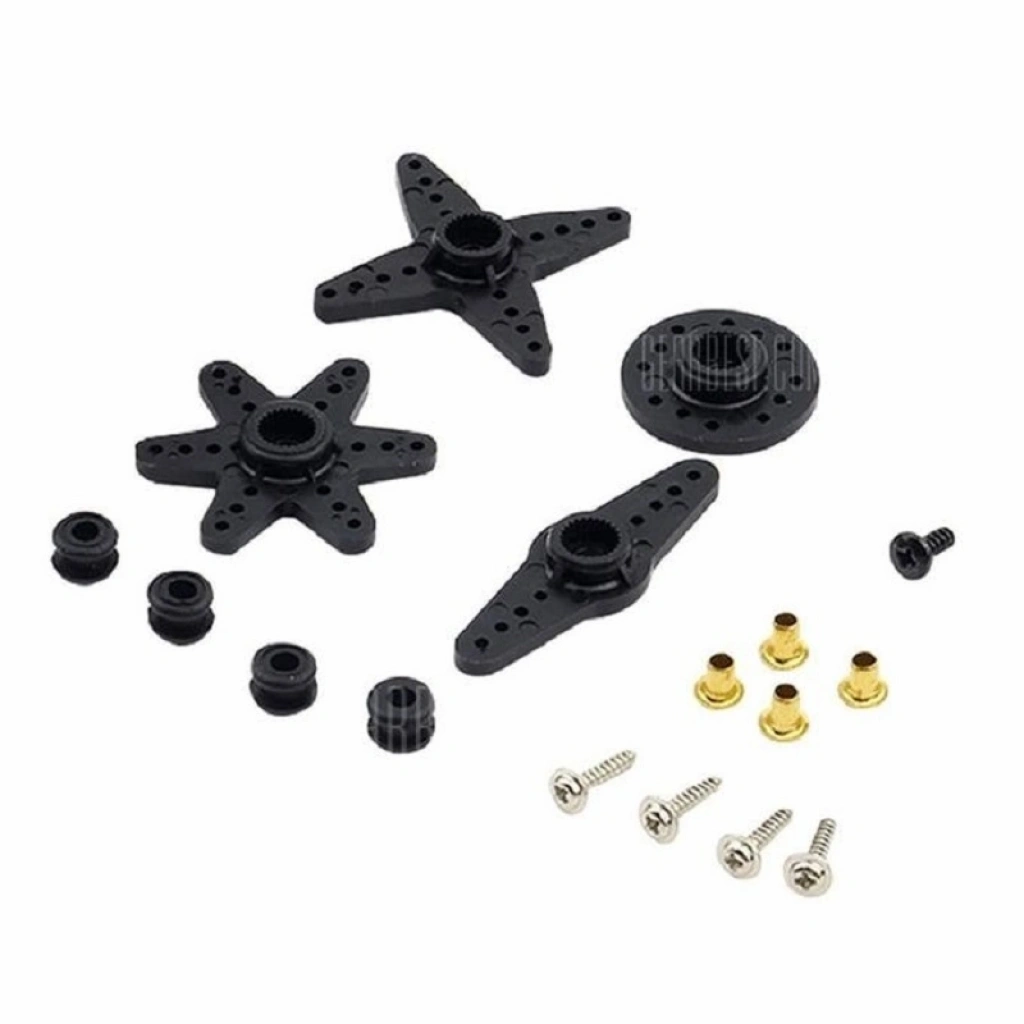 Servo kolları ve vidaları mevcuttur ve Futaba servo kolu ile uyumludur.