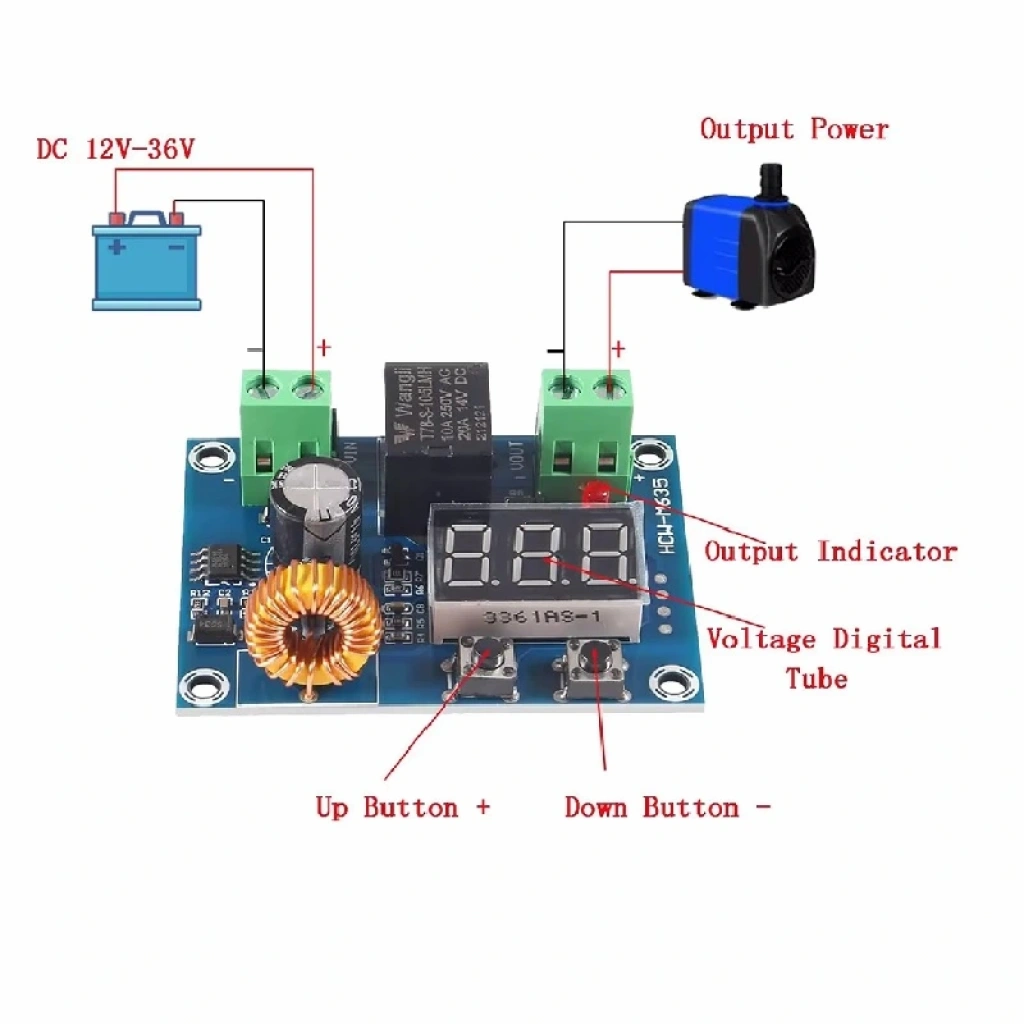 DC 12/36V Batarya Kurşun Asit Akü Düşük Voltaj Koruyucu Voltmetre Gösterge