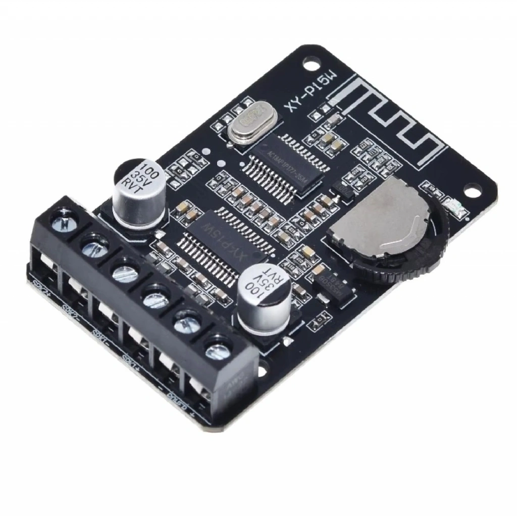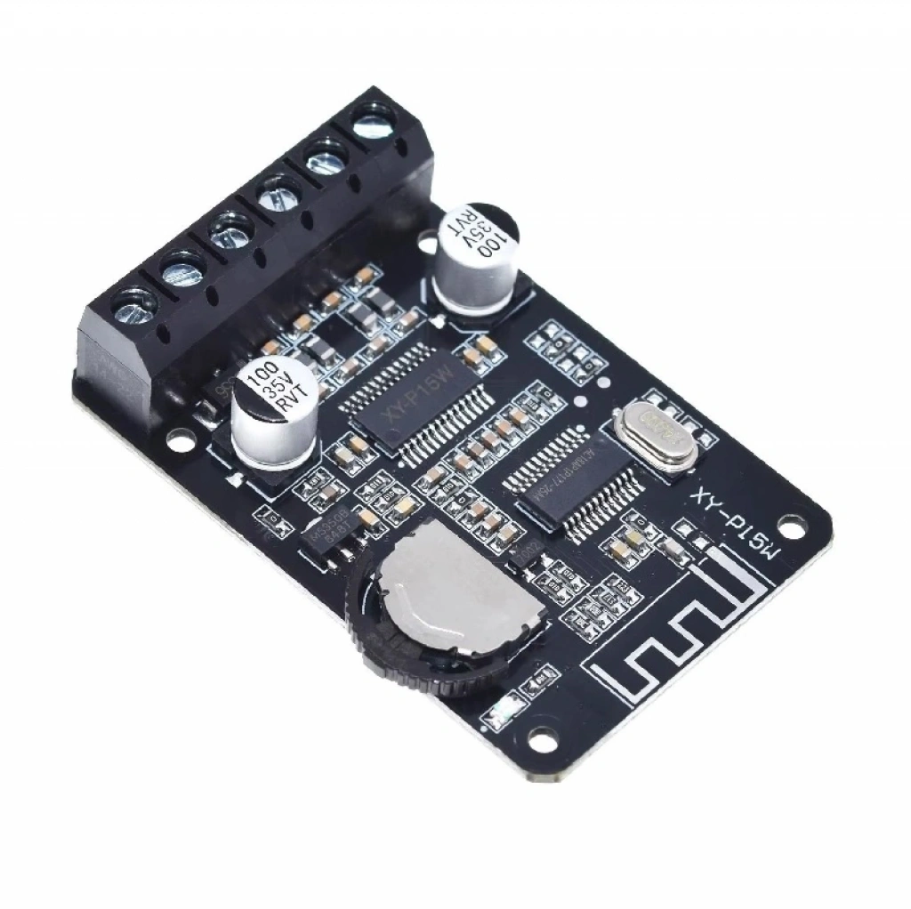 XY-P15W yüksek güçlü bir stereo Bluetooth ses modülüdür. Kablosuz olarak ses müzik aktarımını sağlamak için kullanılır. İki kanal hoparlör çıkışı. Dahili amplifikatöre sahiptir. Bu sebeple doğrudan hoparlöre bağlanabilir. Cep telefonlarınızdan yada herhangi bir bluetooth cihazınız üzerinden çalacağınız sesleri kablosuz olarak max 15 metre mesafedeki hoparlörlere aktarabilmenizi sağlar.